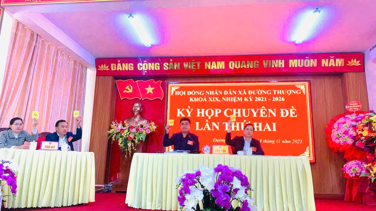 20 °C HĐND xã Đường Thượng tổ chức kỳ họp thứ hai (Chuyên đề), HĐND xã khoá XIX, nhiệm kỳ 2021 - 2026. Đồng chí Nguyễn Đình Duẩn, Bí thư Đảng ủy - Chủ tịch HĐND xã; Đồng chí Lộc Văn Hoàn, Phó Chủ tịch HĐND xã đồng chủ trì kỳ họp.